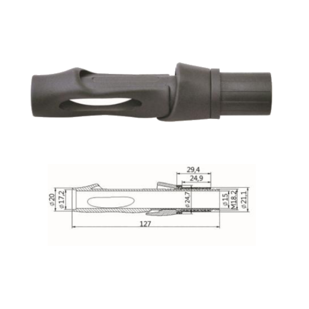 Примітка - катушкотримач не оснащений тубусом. Карбонову (або будь-яку іншу) трубку із зовнішнім діаметром 15 мм необхідно придбати окремо.